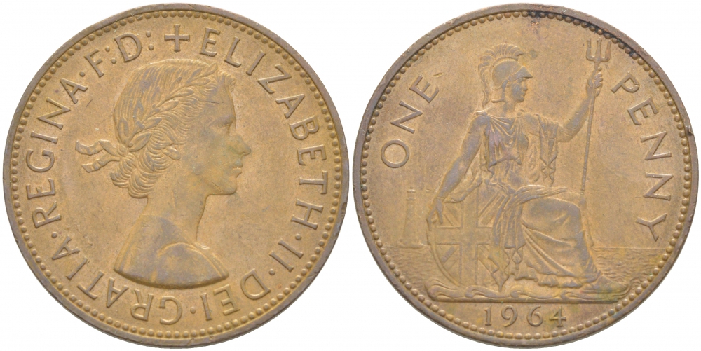 АНГЛИЯ 1 ПЕННИ 1964 ЕЛИЗАВЕТА II Spink 4157 KM 897 бронза 4403-826