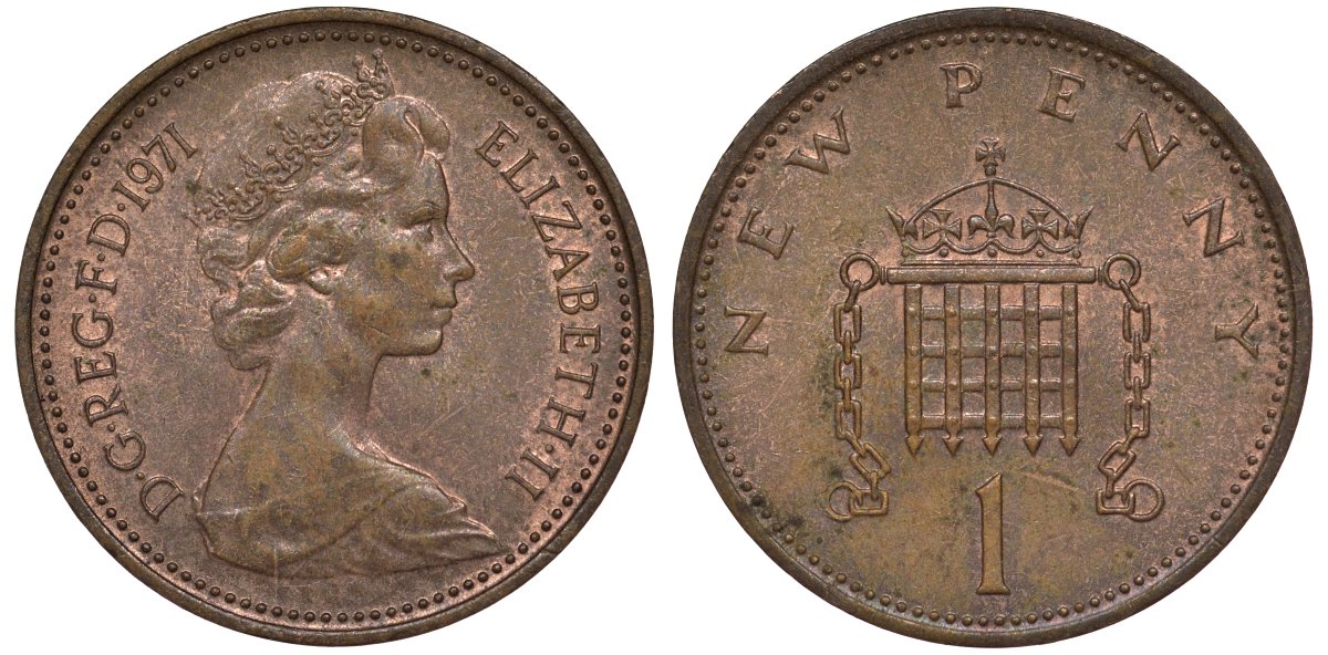 Англия 1 новый пенни 1971 Елизавета II (1952-) KM 915, Spink 4237 бронза 4128-757