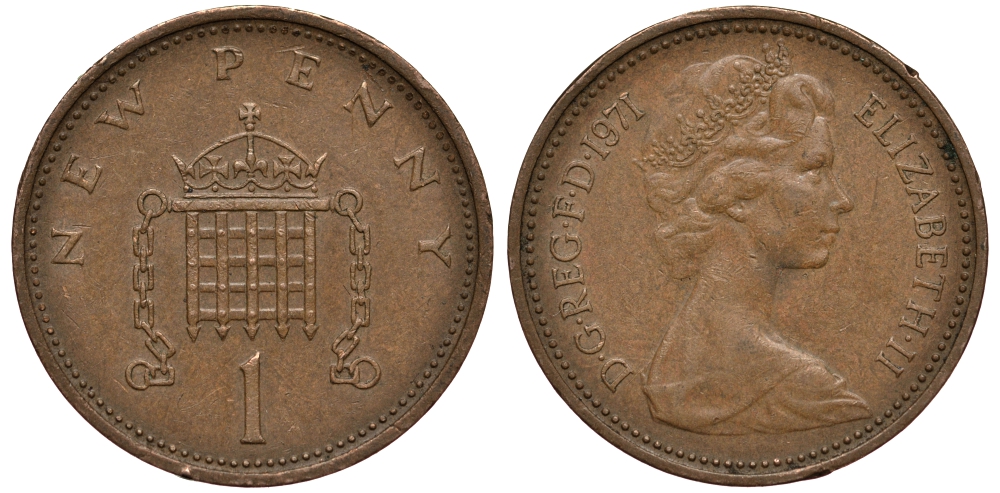 АНГЛИЯ 1 ПЕННИ 1971 ЕЛИЗАВЕТА II (1952-) KM 915, Spink 4237 бронза 4182-123