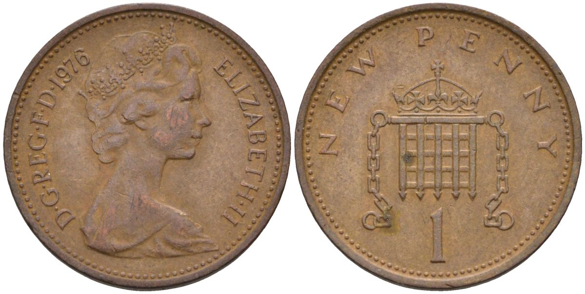 Англия 1 новый пенни 1976 Елизавета II (1952-) KM 915, Spink 4237 бронза 4115-711