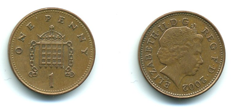 Великобритания 1 пенни 2002 Елизавета II (1952-2022) KM 986, Spink 4710 (B5) сталь плакированная медью 540-229