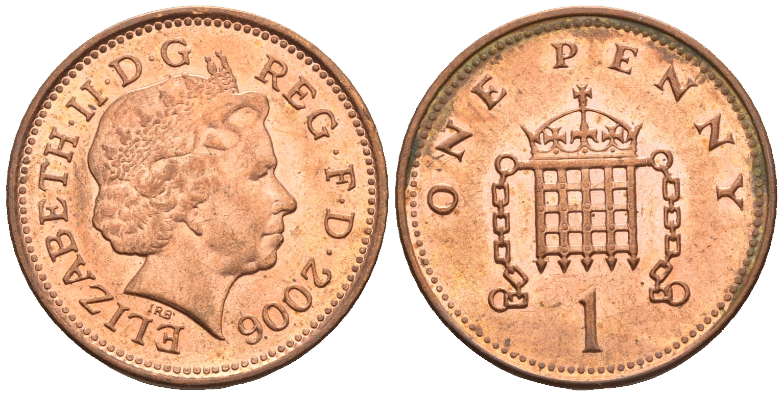 Великобритания 1 пенни 2006 Елизавета II (1952-2022) KM 986, Spink 4710 (B5) сталь плакированная медью 4609-631