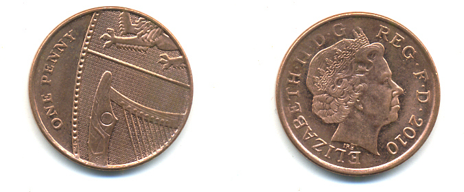 Великобритания 1 пенни 2010 Елизавета II (1952-2022) KM 1107, Spink B6 сталь плакированная медью 177-1223
