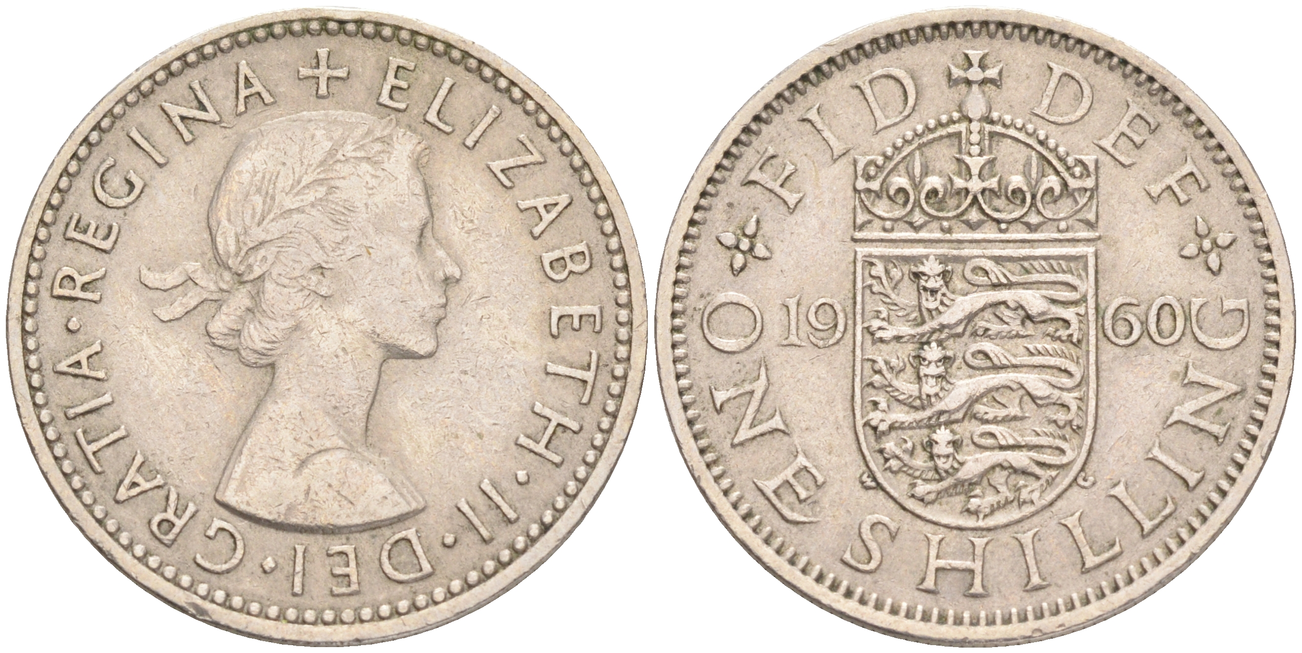 Великобритания 1 шиллинг 1960 Елизавета II (1952-2022), Английский герб KM 904, Spink 4147 медно-никель 4556-635