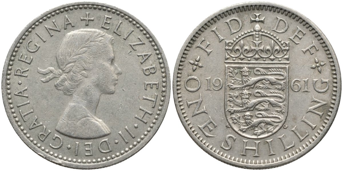 Англия 1 шиллинг 1961 Английский герб, Елизавета II (1952-) KM 904, Spink 4147 медно-никель 4171-622