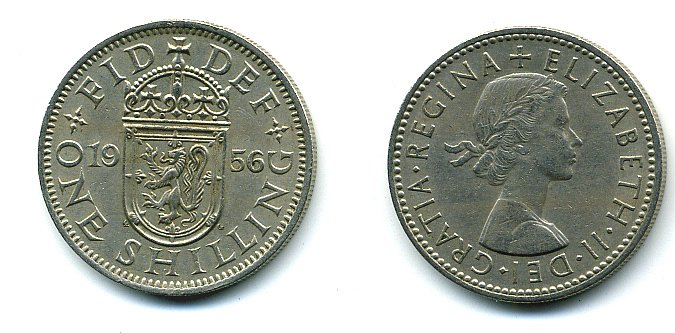 Великобритания 1 шиллинг 1956 Елизавета II (1952-2022), Шотландский герб KM 905, Spink 4148 медно-никель 4110-923