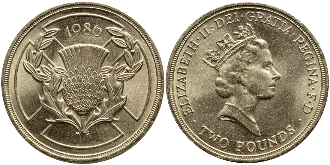 АНГЛИЯ 2 ФУНТА 1986 XIII ИГРЫ СТРАН БРИТАНСКОГО СОДРУЖЕСТВА В ШОТЛАНДИИ KM 947, Spink 4311 никель латунь 36-226