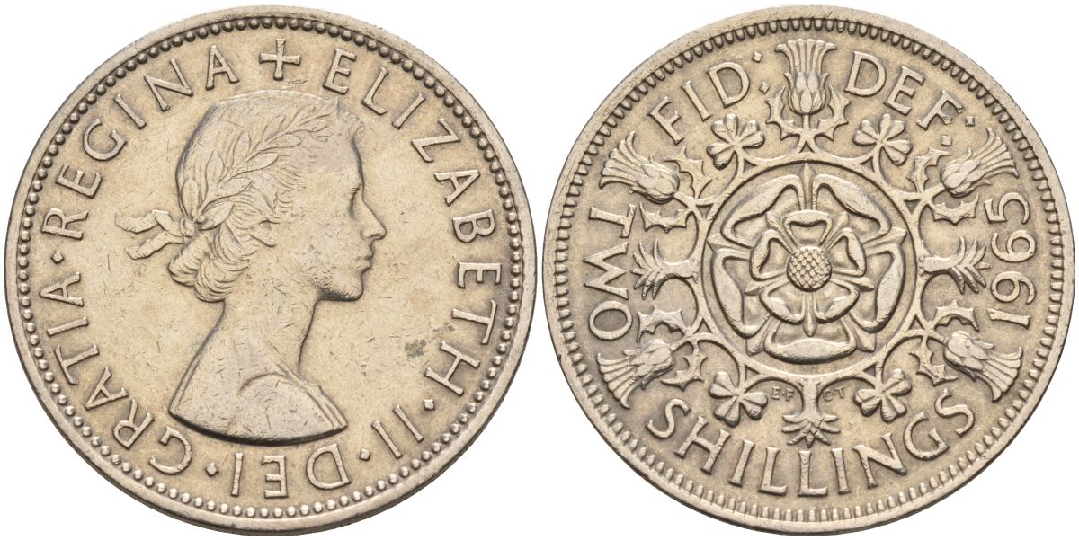Великобритания 2 шиллинга = 1 флорин 1965 Елизавета II (1953-) KM 906, Spink 4146 медно-никель 4149-831