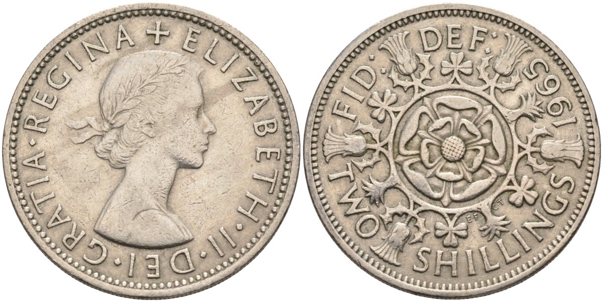 Англия 2 шиллинга 1965 Елизавета II (1952-) KM 906, Spink 4146 медно-никель 4587-936