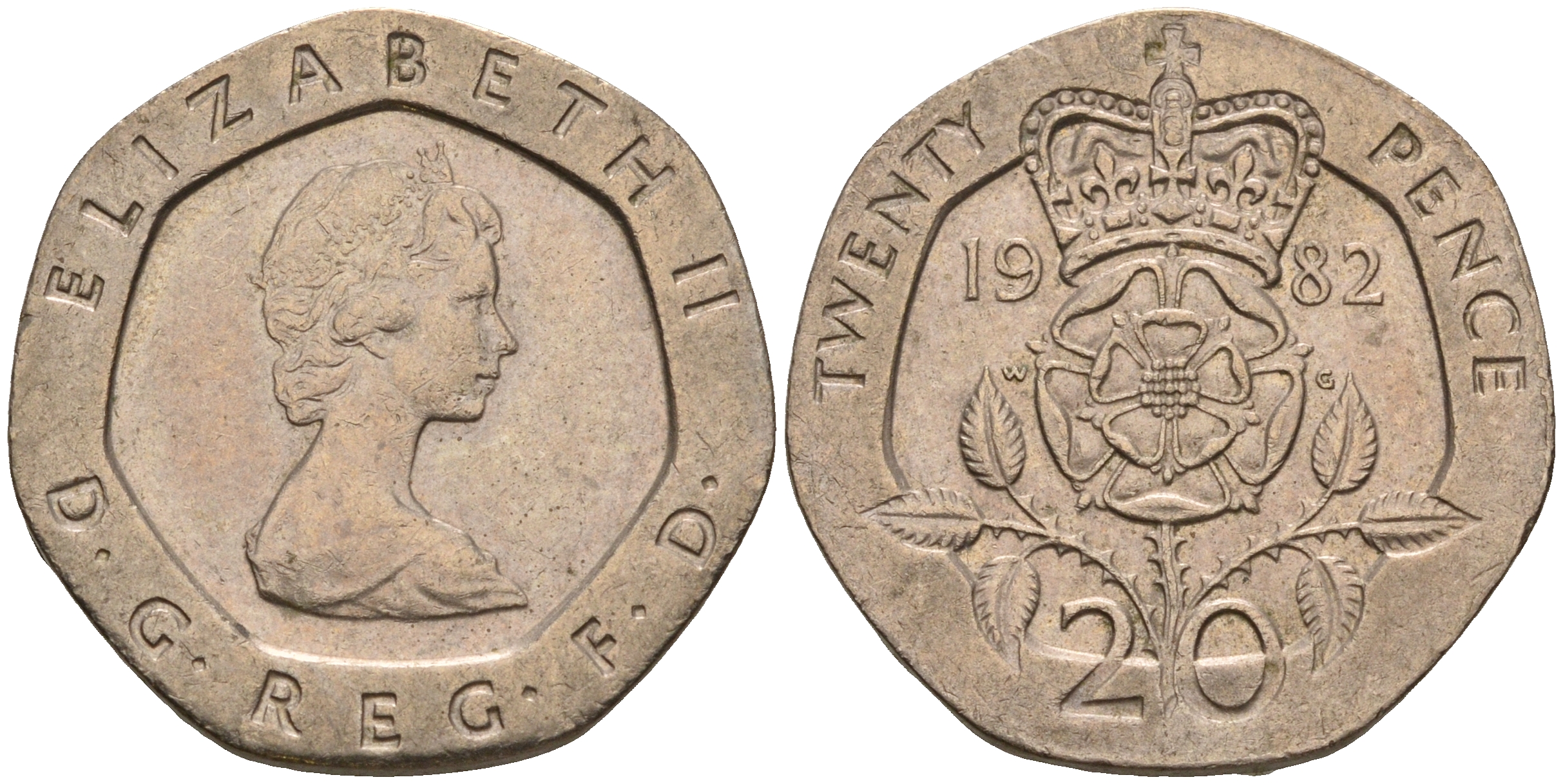 Великобритания 20 пенсов 1982 Елизавета II (1953-) KM 931, Spink 4230 медно-никель 4603-1023