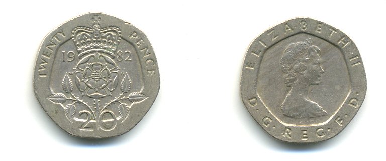 Великобритания 20 пенсов 1982 Елизавета II (1952-2022) KM 931, Spink 4230 (G1) медно-никель 59-321