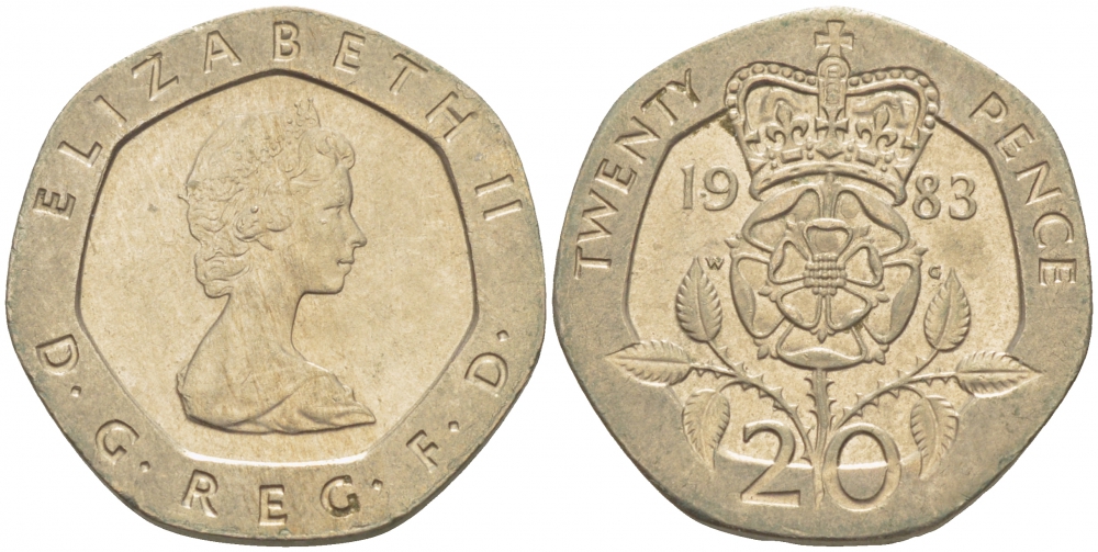 Великобритания 20 пенсов 1983 Елизавета II (1952-2022) KM 931, Spink 4230 (G1) медно-никель 77-254