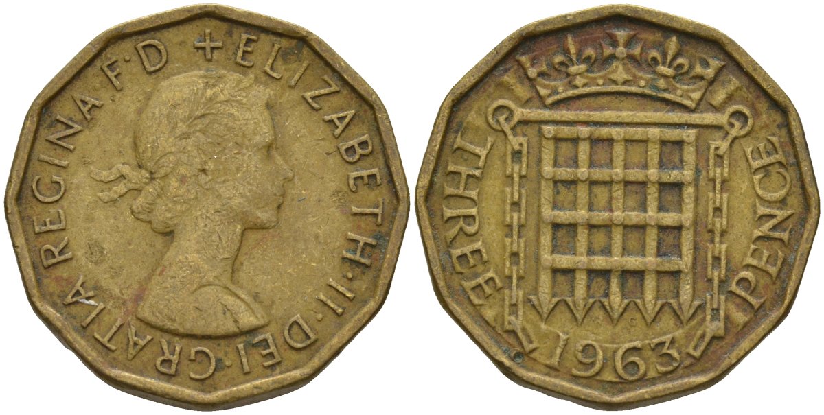 Великобритания 3 пенса 1963 Елизавета II (1953-) KM 900 никель латунь 4146-351