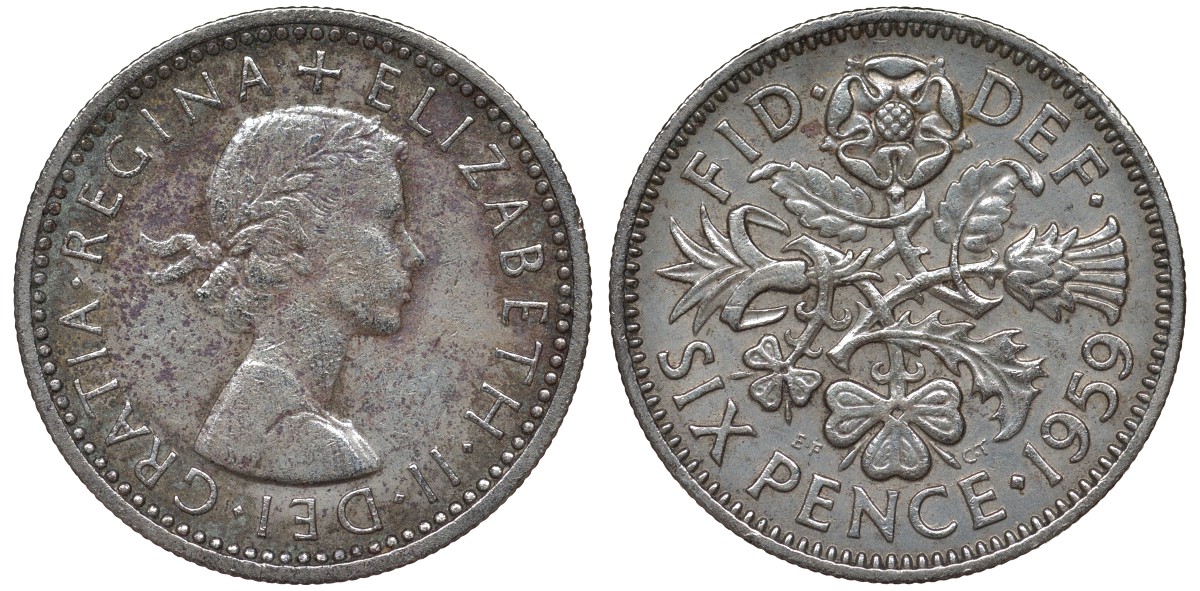 Великобритания 6 пенсов 1959 Елизавета II (1952-2022) KM 903, Spink 4149 медно-никель 4122-621