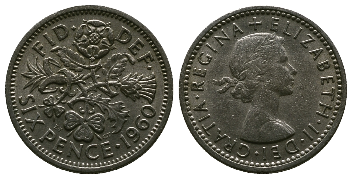 Великобритания 6 пенсов 1960 Елизавета II (1952-2022) KM 903, Spink 4149 медно-никель 4381-728