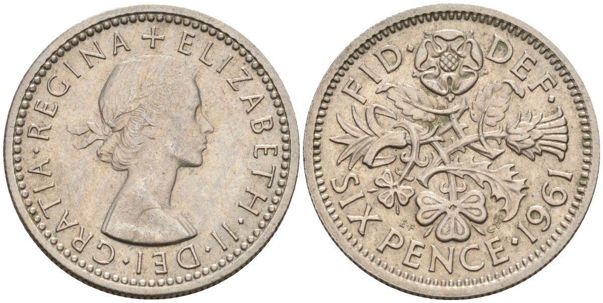 Великобритания 6 пенсов 1961 Елизавета II (1953-) KM 903, Spink 4149 медно-никель 4154-242