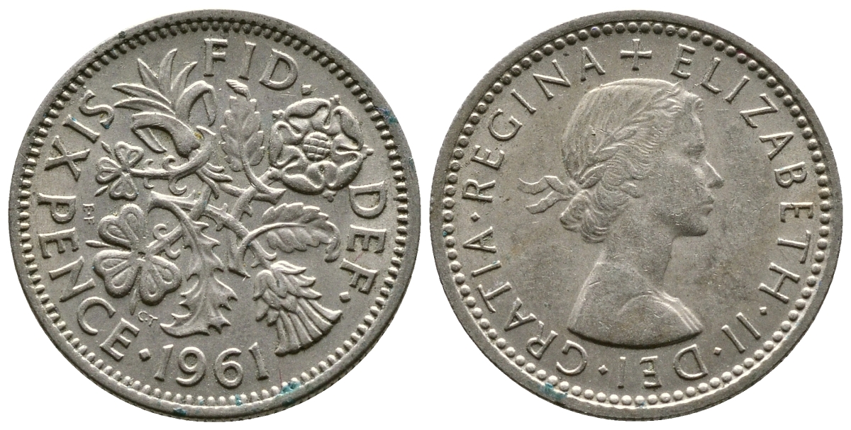 Великобритания 6 пенсов 1961 Елизавета II (1952-2022) KM 903, Spink 4149 медно-никель 4364-3642