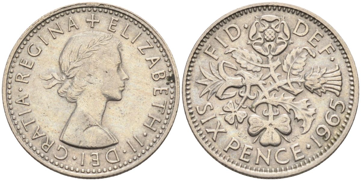 Великобритания 6 пенсов 1965 Елизавета II (1952-2022) KM 903, Spink 4149 медно-никель 4115-735