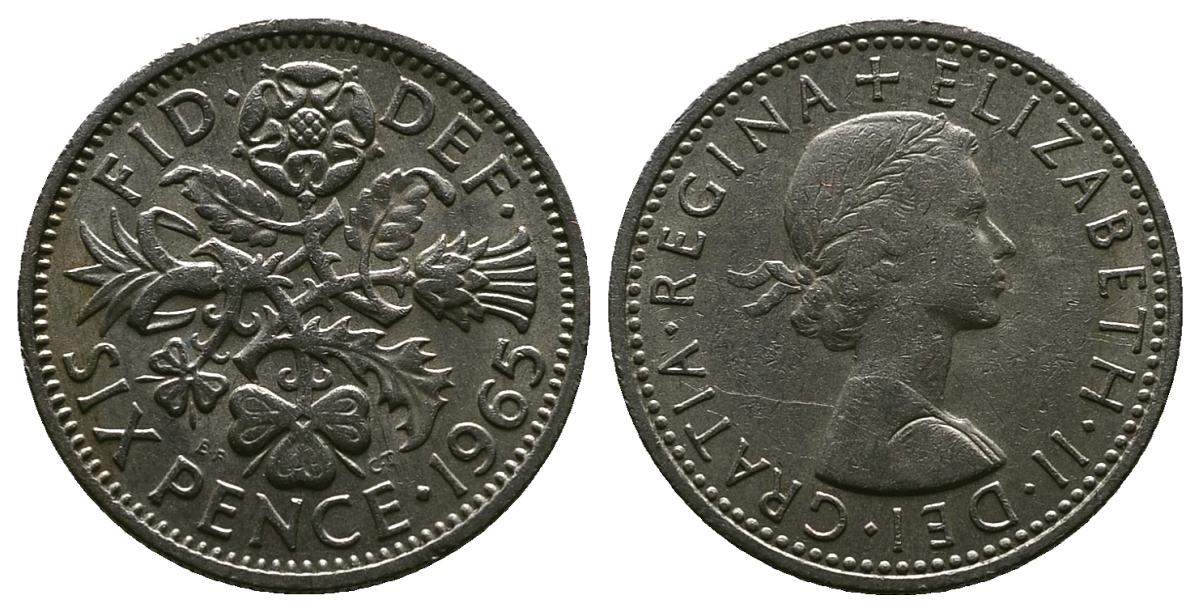 Великобритания 6 пенсов 1965 Елизавета II (1952-2022) KM 903, Spink 4149 медно-никель 4381-833