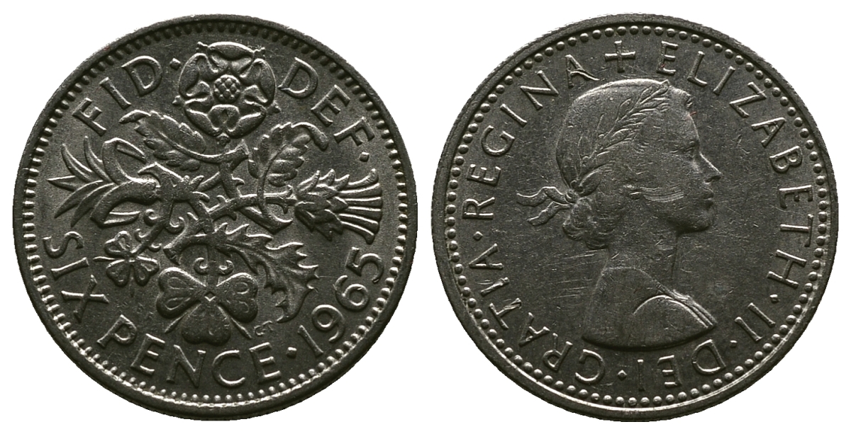 Великобритания 6 пенсов 1965 Елизавета II (1952-2022) KM 903, Spink 4149 медно-никель 4381-839