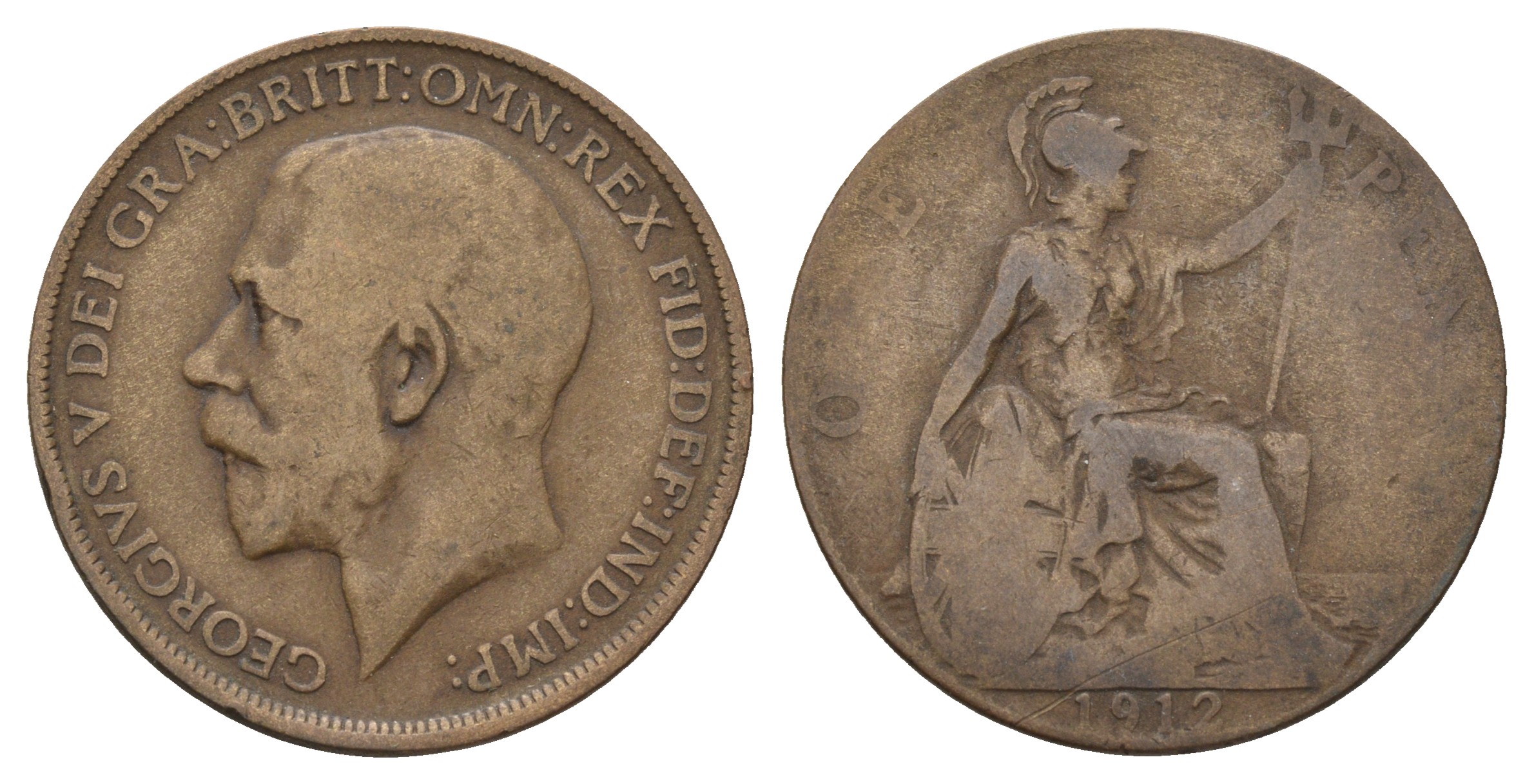 Великобритания 1 пенни 1912 Георг V (1910-1936) KM 810, Spink 4051 бронза 4680-824
