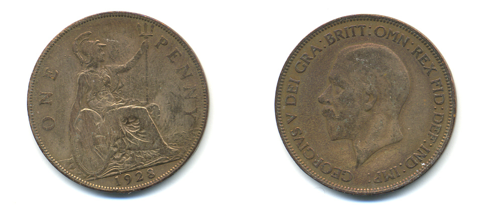 Великобритания 1 пенни 1928 Георг V (1910-1936) КМ 838, Spink 4055 бронза 83-545