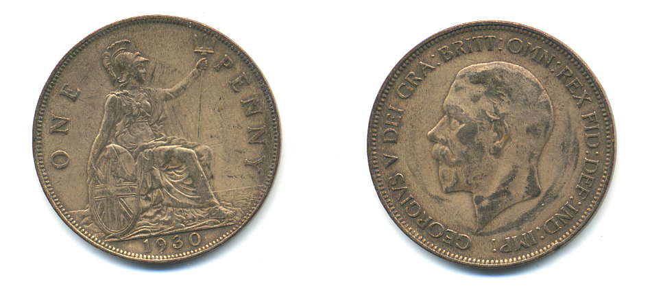 Великобритания 1 пенни 1930 Георг V (1910-1936) КМ 838, Spink 4055 бронза 83-546