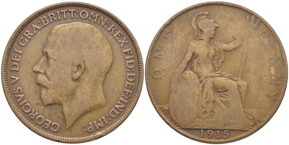 Великобритания 1 пенни 1915 Георг V (1910-1936) KM 810, Spink 4051 бронза 111-1234