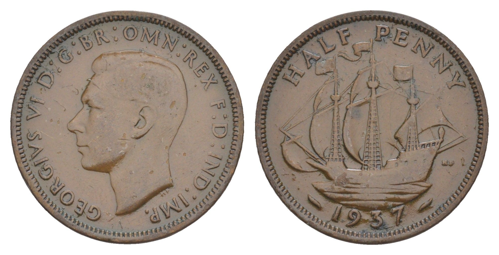 Великобритания 1/2 пенни 1937 Георг VI (1936-1952) KM 844, Spink 4115 бронза 4638-455