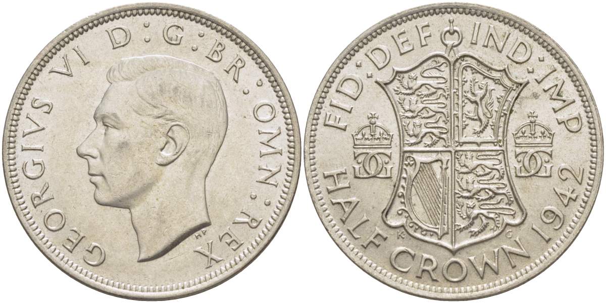 АНГЛИЯ 1/2 КРОНЫ 1942 ГЕОРГ VI (1936-1952) KM 856, Spink 4080 серебро 4531-612