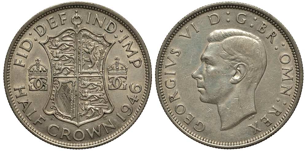 АНГЛИЯ 1/2 КРОНЫ 1946 ГЕОРГ VI (1936-1952) KM 856, Spink 4080 серебро XF+ 1518-1644