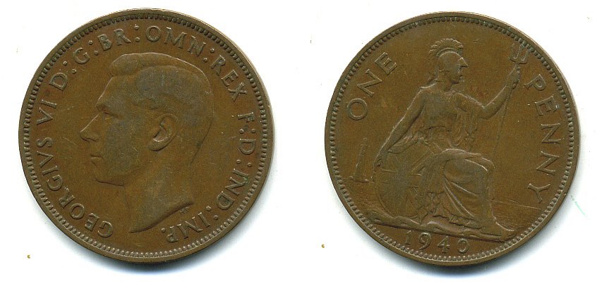 АНГЛИЯ 1 ПЕННИ 1940 ГЕОРГ VI КМ 845, Spink 4114 бронза 4110-321