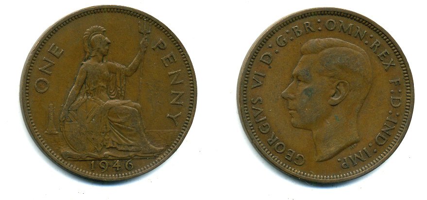 Великобритания 1 пенни 1946 Георг VI (1936-1952) KM 845, Spink 4114 бронза 37-1114