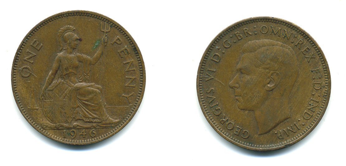 Великобритания 1 пенни 1946 Георг VI (1936-1952) KM 845, Spink 4114 бронза 41-917