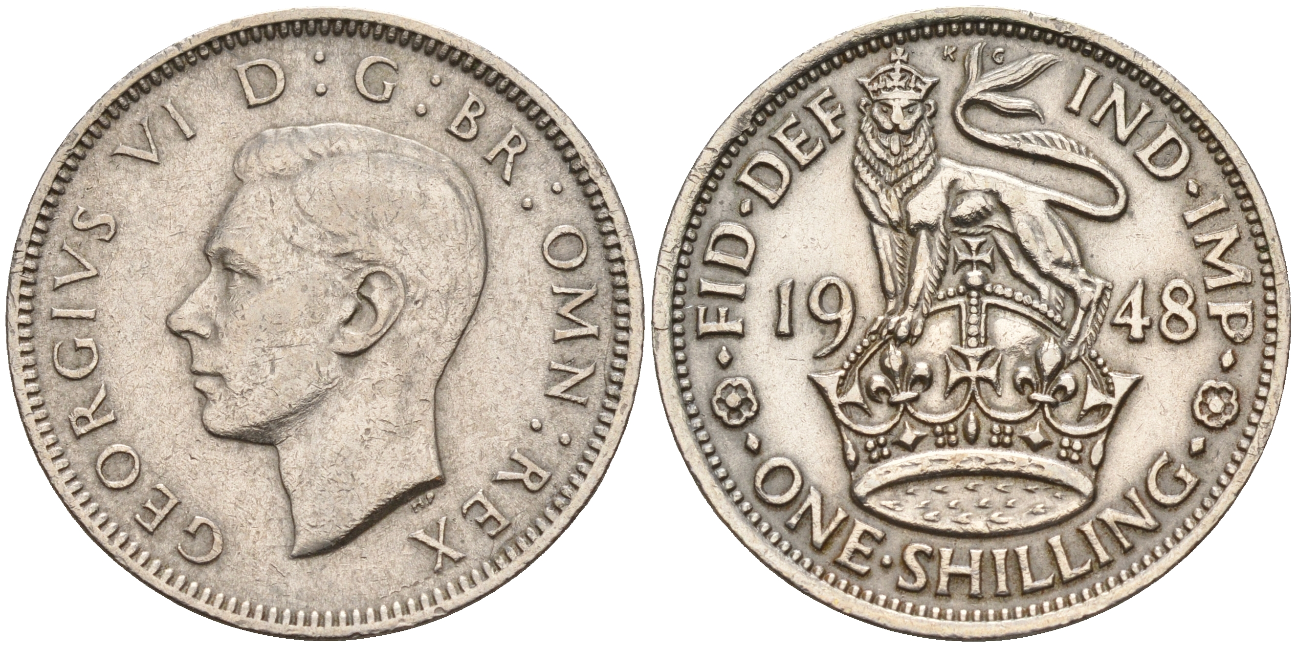 Великобритания 1 шиллинг 1948 Георг VI (1936-1952), Английский герб KM 863, Spink 4103 медно-никель 4153-335