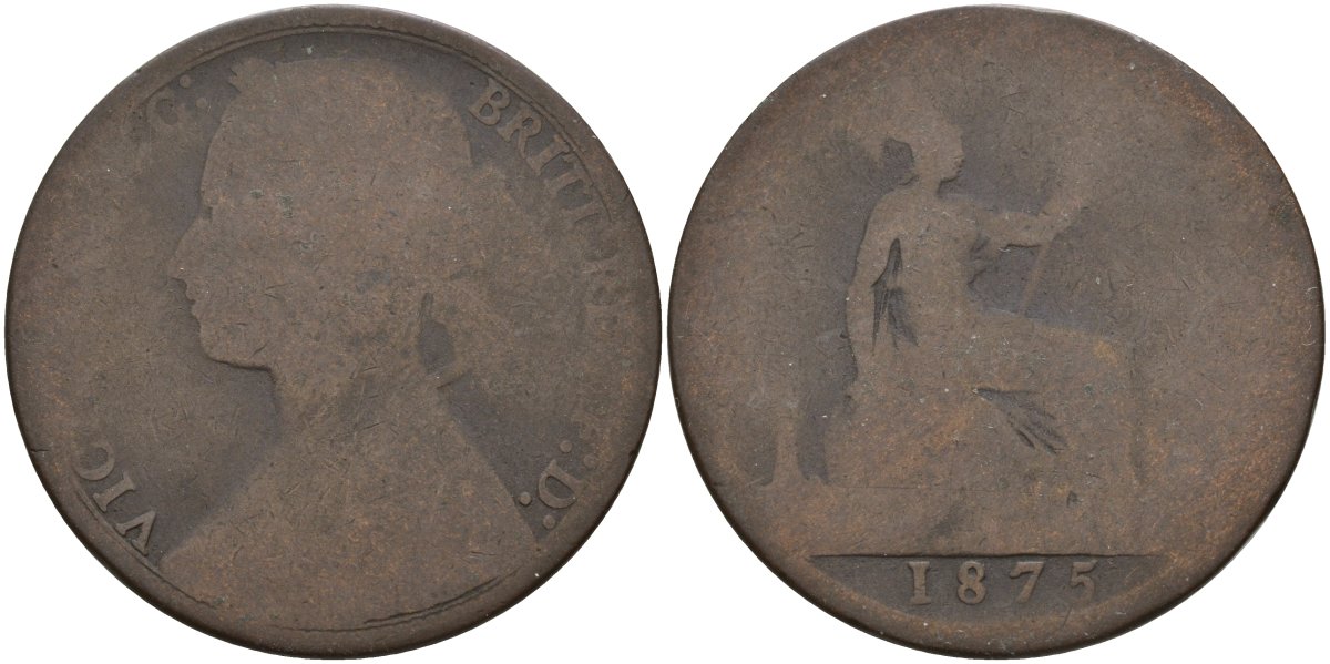 Великобритания 1 пенни 1875 Виктория (1838-1901) KM 755 бронза 4144-642