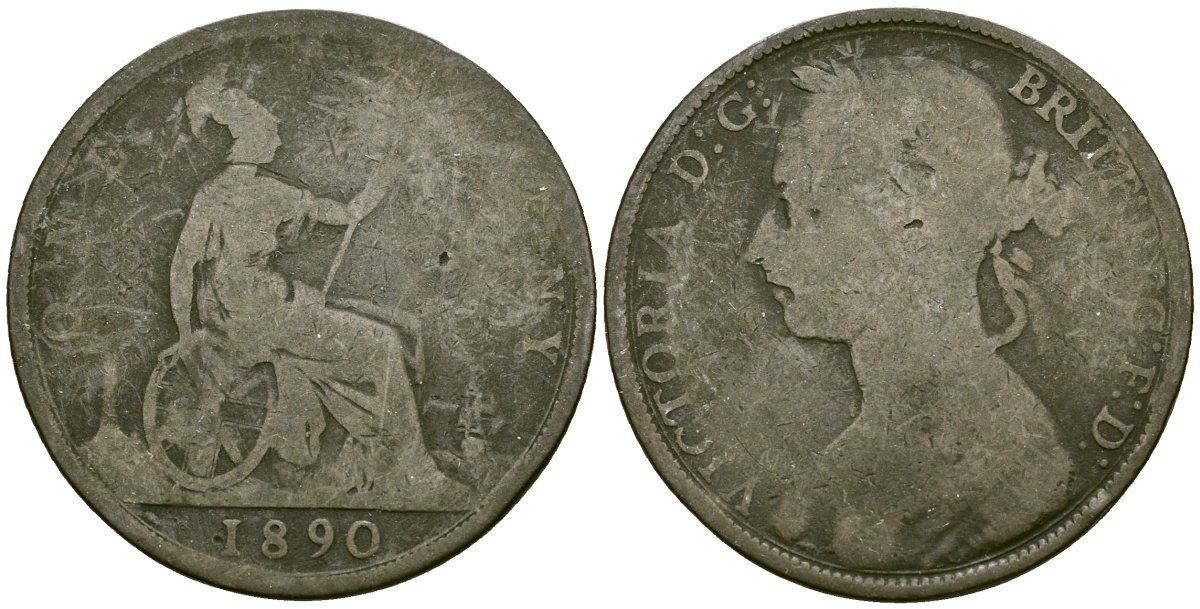 Англия 1 пенни 1890 королева Виктория (1838-1901) KM 755, Spink 3954 бронза 4120-744