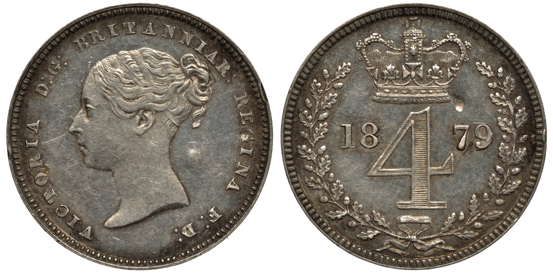 Великобритания 4 пенса 1879 Виктория (1837-1901) KM 732, Spink 3917 серебро aUNC 1524-212