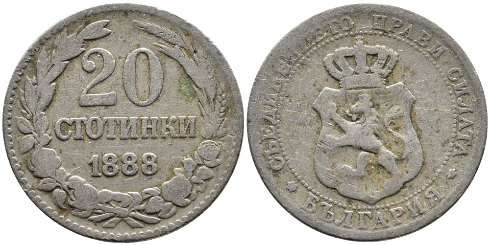 Болгария 20 стотинок 1888 принц Фердинанд I (1867-1908) KM 11 медно-никель 4390-334