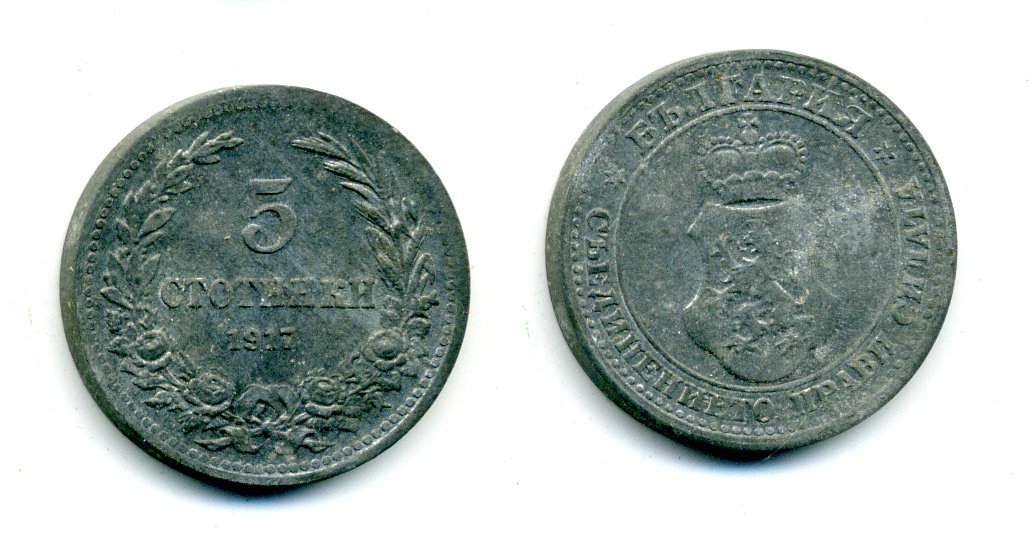 Болгария 5 стотинок 1917 Фердинанд I (1908-1918) KM 24a цинк 35-1356