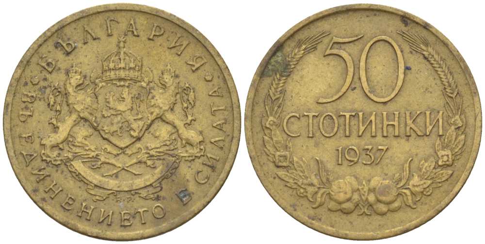 БОЛГАРИЯ 50 СТОТИНОК 1937 KM 46 алюминиевая бронза 4516-917