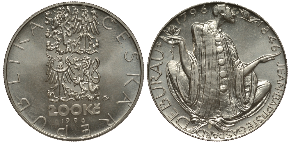 ЧЕХИЯ 200 КРОН 1996 ЖАН-БАПТИСТ ГАСПАР ДЕБУРУА KM 24 серебро UNC 441-1125