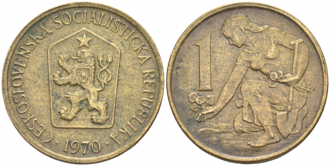ЧЕХОСЛОВАКИЯ 1 КРОНА 1970 ЖЕНЩИНА САЖАЕТ ЛИПОВОЕ ДЕРЕВО KM 50 алюминиевая бронза 186-157