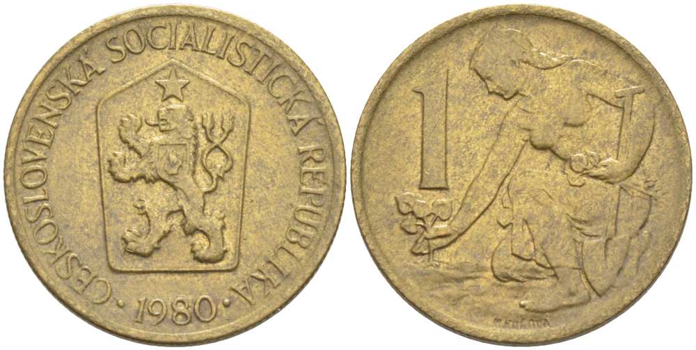 ЧЕХОСЛОВАКИЯ 1 КРОНА 1980 ЖЕНЩИНА САЖАЕТ ЛИПОВОЕ ДЕРЕВО KM 50 алюминиевая бронза 4514-911