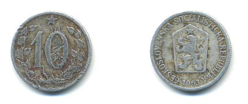 ЧЕХОСЛОВАКИЯ 10 ГЕЛЛЕРОВ 1963 СОЦИАЛИСТИЧЕСКАЯ РЕСПУБЛИКА KM 49.1 алюминий 80-715