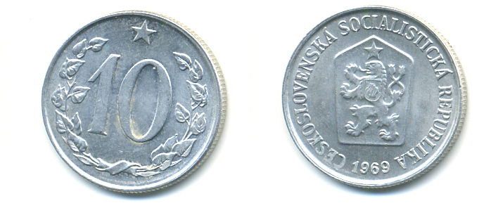 ЧЕХОСЛОВАКИЯ 10 ГЕЛЛЕРОВ 1969 СОЦИАЛИСТИЧЕСКАЯ РЕСПУБЛИКА KM 49.1 алюминий 89-1752