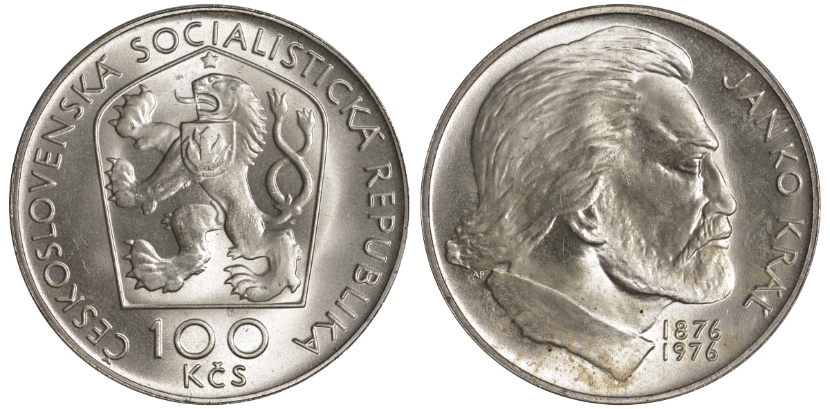 Чехословакия 100 крон 1976 100 лет со дня смерти Янко Краля (1876-1976) KM 84 серебро UNC 4565-943