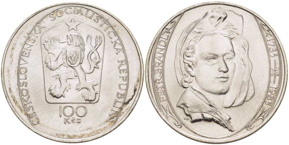 Чехословакия 100 крон 1985 250 лет со дня смерти Петра Брандля (1668-1735) KM 120 серебро 4512-915
