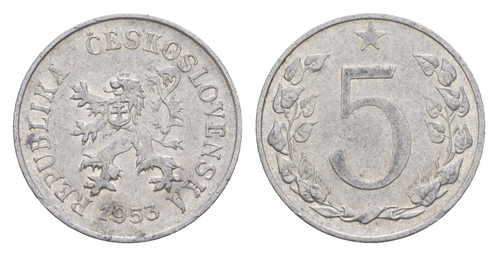 Чехословакия 5 геллеров 1953 KM 37 алюминий 4396-437