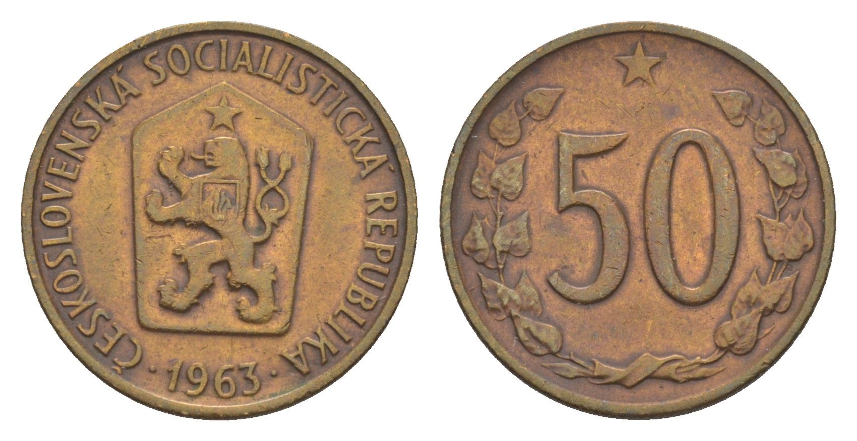 Чехословакия 50 геллеров 1963 KM 55.1 бронза 4516-451